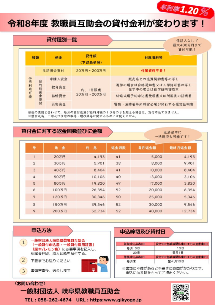 令和8年度より貸付年利率が1.20%に変わります。(令和7年度 年利率0.84%)